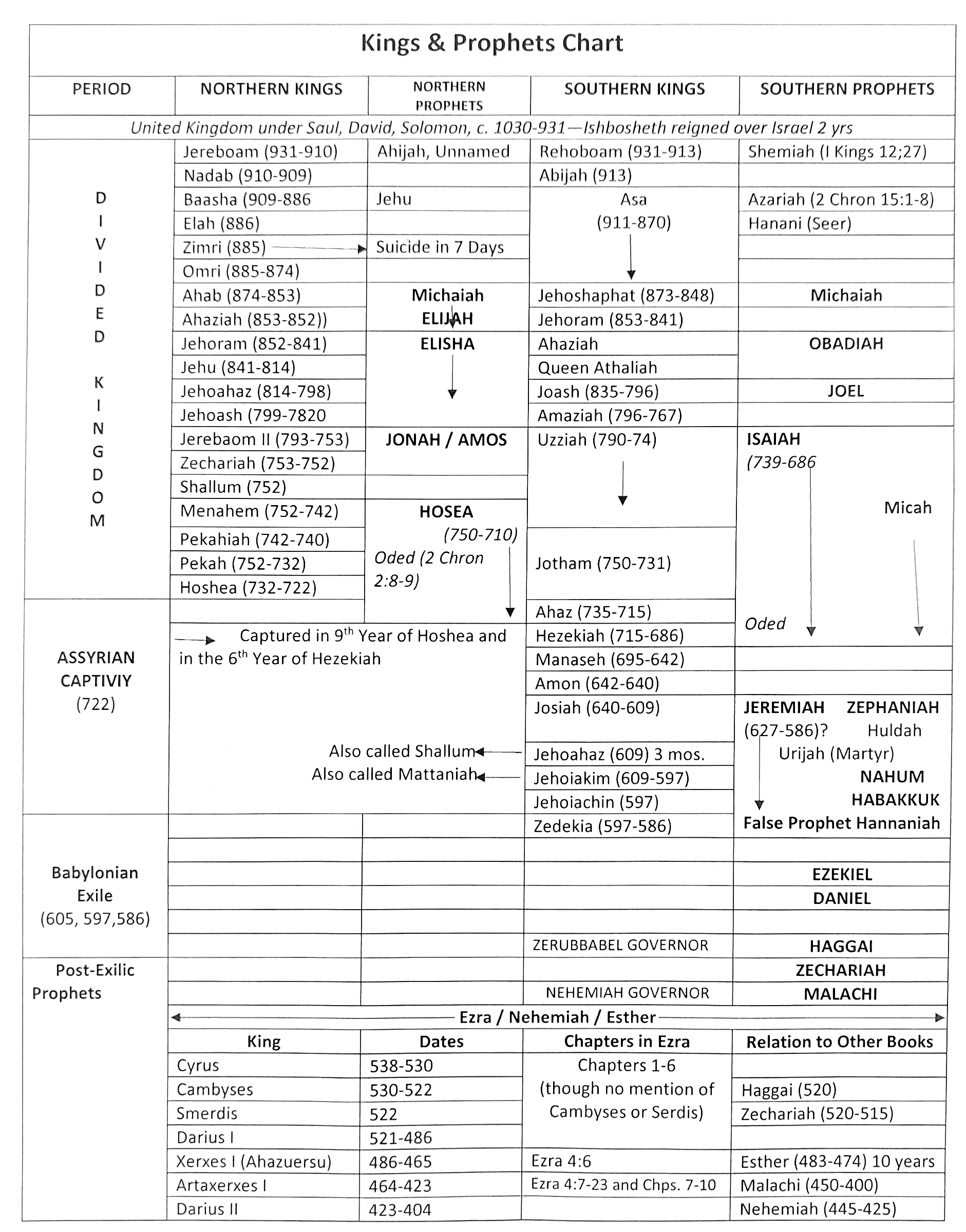 A Historical Chart for Helpful Context on the Kings & Prophets of the Old Testament
